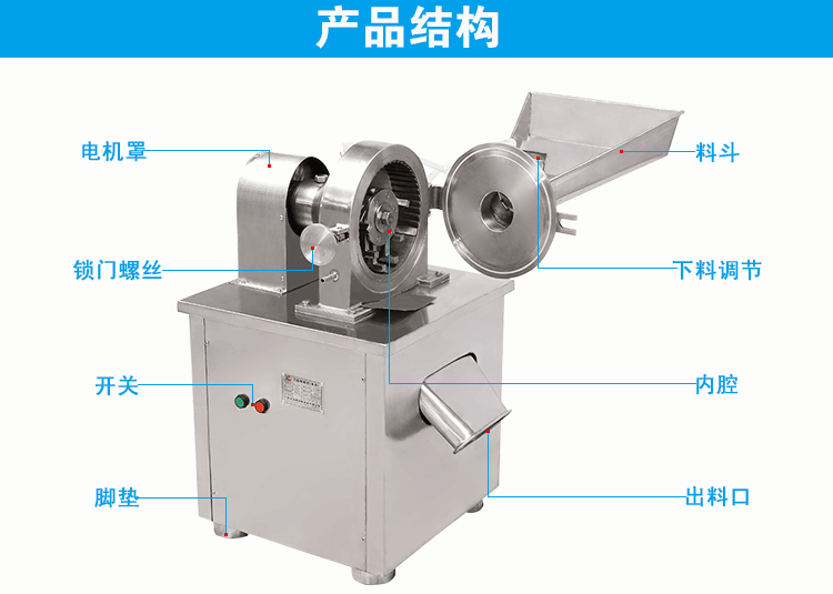 1、结构简单,粉碎腔装拆简便,容易清理。